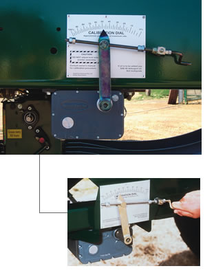 The standard metering drive is ground driven to a zero max gearbox. Seeding rate is accurately set using the calibration dial.