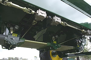 Below: Right angle drives, universals and sliding shafts provide a positive and reliable drive system.