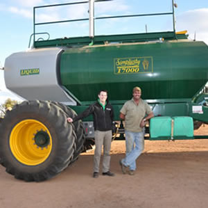 The Cobleys bought the Simplicity bin earlier this year to upgrade to a larger air seeder with liquid. Their previous cart was a 9000 litre Simplicity, which Darren Cobley said they had a fantastic run with.