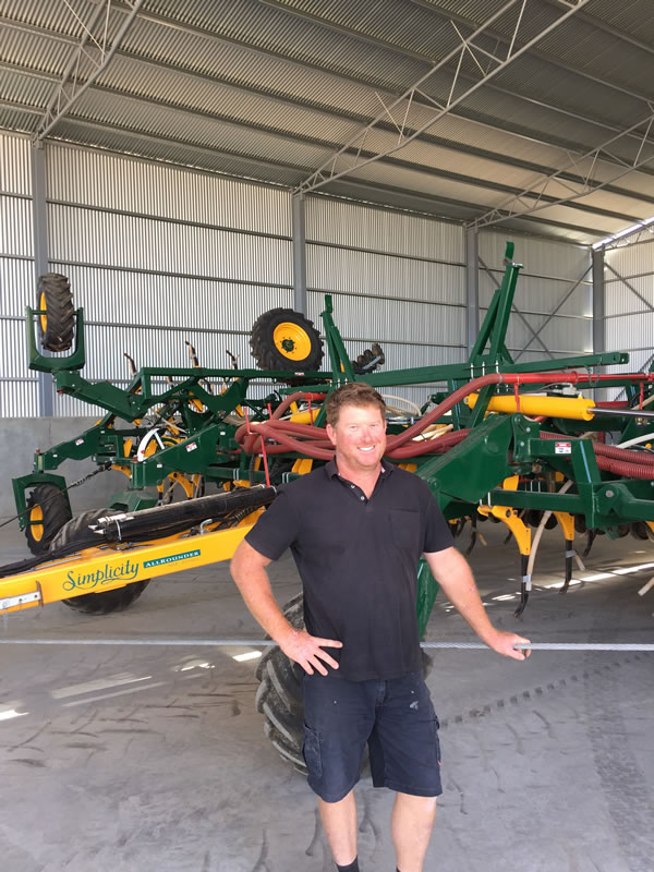Their previous bar was a spring tyne design and as part of their research to buy a new machine, the Slades spoke to Simplicity owners from Western Australia and other states. “We knew the bar needed to be built like a brick sh*thouse,” Andrew said. “And we were also looking for a floating hitch to help with contour following.” After the sowing was done last year with the Allrounder 308 bar, set up on 10-inch row spacings, Andrew was impressed. “We have been very happy with it. It’s really paid off. It’s a slightly more expensive bar but the heavy build quality has been fantastic.” Being able to control the downforce on the hydraulic tynes on-the-go is another plus for Andrew. “The country is quite varied so being able to adjust the downforce on the tynes is a good feature and very easy to adjust. It’s done from in the tractor cab and the gauge is easy to see.